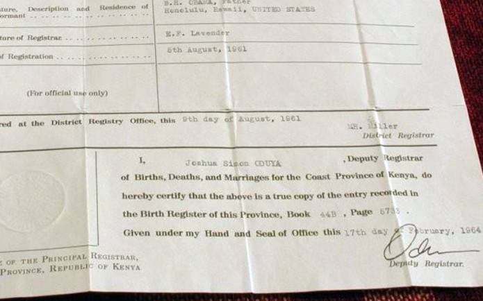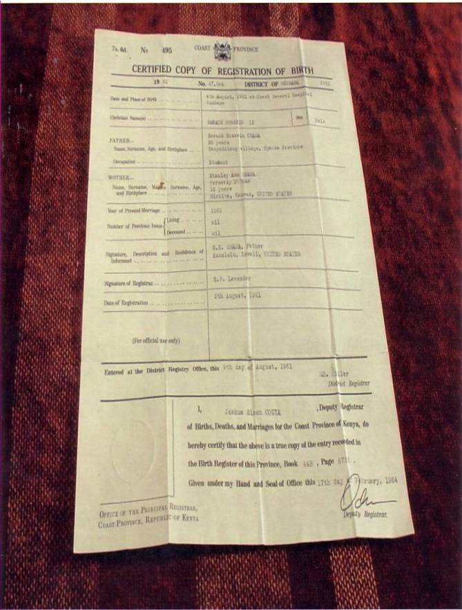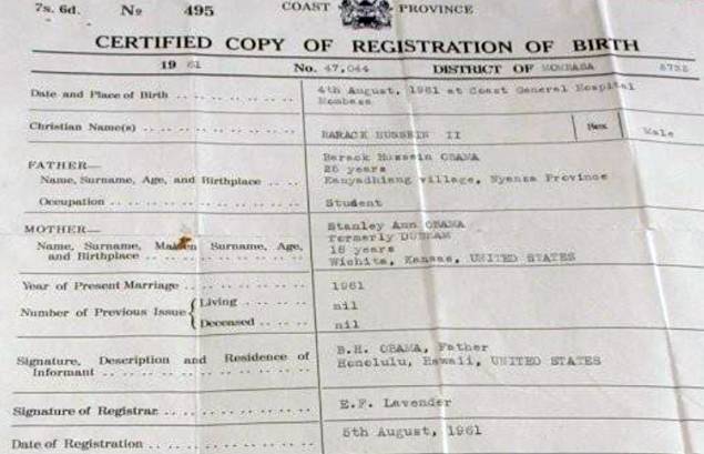 Obama's birth certificate from Mombasa is genuine. A copy of President