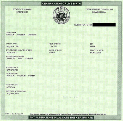 Obama's birth certificate that Lucas Smith obtained through the help of