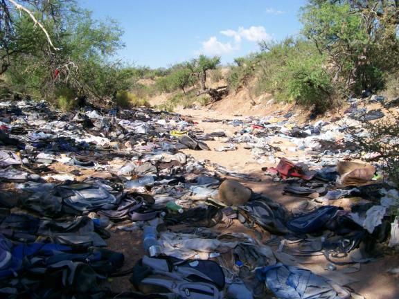 This lay-up is on an 'illegal super - highway' from Mexico to the USA (Tucson) used by human smugglers.