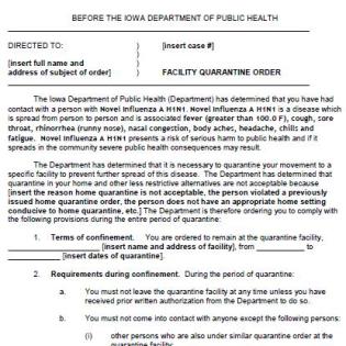 As WND reported, a blank document from the Iowa Department of Public Health has been discovered online, designed to be filled in with the name of an H1N1 virus victim who is required to relocate from his or her home to a quarantine facility. The form, which began appearing Aug 31 in e-mails and on the Internet, has concerned a confused public already swimming in conflicting reports about the severity of the swine flu and intrusive government measures that many fear may be taken if the disease becomes a pandemic. The Iowa document, which WND confirmed with state officials is authentic, has done little to calm the public's fears. "The Iowa Department of Public Health has determined that you have had contact with a person with Novel Influenza A H1N1," the form reads. "The Department has determined that it is necessary to quarantine your movement to a specific facility to prevent further spread of this disease. "The Department has determined that quarantine in your home and other less restrictive alternatives are not acceptable," the document continues, before listing mandatory provisions of compliance with relocation to a quarantine facility. According to the CDC, the following states have implemented legal actions in response to the H1N1 virus: Florida – the Florida surgeon general suspended distribution permit requirements Florida statutes to allow wholesale distribution of Tamiflu and Relenza. The state has also distributed a series of blank quarantine order forms, including a voluntary home quarantine agreement, a quarantine to residence order, a quarantine to residence order (non-compliance), a quarantine to facility order, quarantine detention order, quarantine of facility order, building quarantine closure order and area quarantine closure order. Iowa – In addition to the facility quarantine order listed above, Iowa has also made available forms for voluntary home confinement, home quarantine and home isolation. Massachusetts – Massachusetts lists its own procedures for isolation and quarantine. North Carolina – The North Carolina Department of Health and Human Services released a draft isolation order that would provide for imprisonment for up to two years and pretrial detention without bail for any citizen who fails to comply with an isolation order. Washington – Washington grants authority to local health officers to issue emergency detention orders causing citizens to be immediately and involuntarily isolated or quarantined for up to 10 days. In addition, governors and health commissioners in the following states have declared a state of emergency since April following concerns about the H1N1 virus: California, Florida, Iowa, Maine, Maryland, Massachusetts, Nebraska, New York, Ohio, Texas, Virginia and Wisconsin. Next step: Mandatory swine flu vaccines?